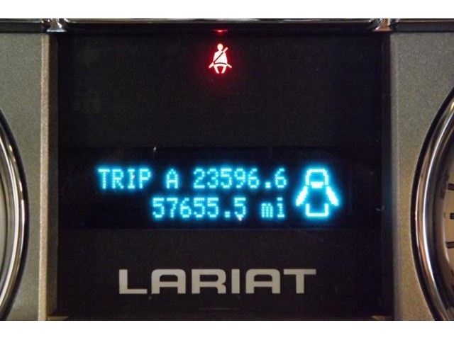 Heated Leather Seats, Flex Fuel, Satellite Radio, iPod/MP3 Input, Bluetooth, CD Player, Trailer Hitch, Aluminum Wheels, Dual Zone A/C, Fourth Passenger Door MP3 Player, Keyless Entry, Privacy Glass, Child Safety Locks. Lariat with Tuxedo Black with Pueblo Gold Metallic exterior and Tan interior features a 8 Cylinder Engine with 310 HP at 5000 RPM*.