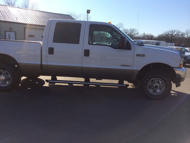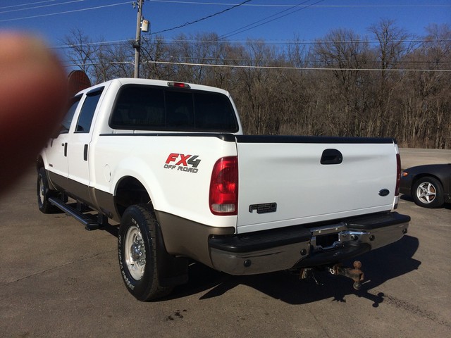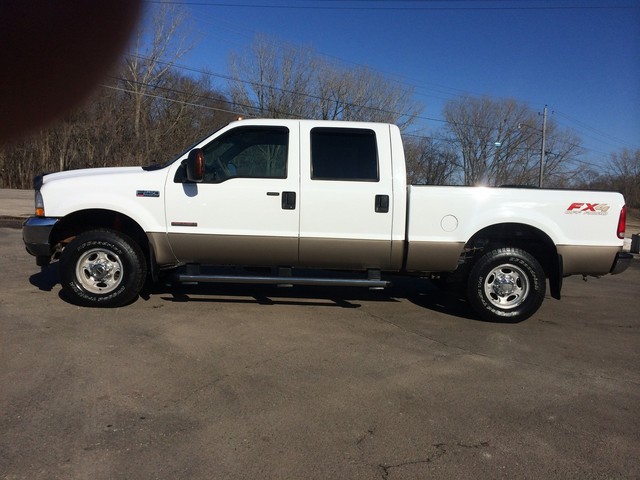 NO RESERVE!! 2004 FORD F-250 CREW CAB FX4 DIESEL. 145,000 MILES. RUNS AND DRIVES VERY NICE. STARTS RIGHT UP AND DRIVES DOWN THE ROAD VERY NICE! BODY IS IN GOOD SHAPE AS SEEN IN PICS, JUST DETAILED AND SHINES UP VERY NICE. TIRES ARE BF GOODRICH AND ABOUT HALF TREAD. FRONT RIGHT TIRE HAS  LITTLE WHITE SHOWING ON SIDEWALL. INTERIOR IS IN GOOD SHAPE WITH AVE WEAR. STEERING WHEEL HAS SOME WEAR AND SEATS ARE IN GOOD SHAPE BUT SHOW SOME WEAR. TRUCK COMES WITH B AND W FLIP OVER BALL. HAS A SMALL CRACK ON MIRROR HOUSING. TRUCK IS PRETTY WELL LOADED UP WITH BACK UP ALARM, HEATED LEATHER, CD, REMOTE LOCKS, AND CHROME STEP BARS. I HAVE PERSONALY PUT OVER 2,000 MILES ON IT AND IT RUNS OUT NICE. EVERYTHING SEEMS TO WORK AS IT SHOULD. PLEASE FEEL FREE TO CALL ME ( DARREN) AT 319-239-6900 THANKS AND I WILL ALSO ADD THAT I WILL BE GONE FROM MARCH 30 TH THROUGH APRIL 7TH SO I WILL NOT BE ABLE TO MEET SOMEONE AND SELL IT THROUGH THESE DATES.