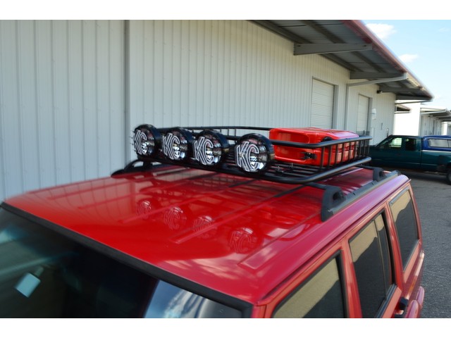 **Safari cargo rack: black textured finish, easy to take on and take off but is very sturdy. Jerry can (gas can) mounted on the rack as well.