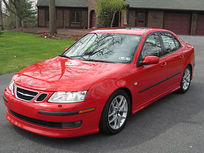 White’s Auto Sales is so excited to offer you this stunning 2007 Saab 9-3 Aero Sport Sedan in Rio Red with a gorgeous Parchment and Black leather interior.  This Aero Sport Sedan is equipped with a 2.8L DOHC 24-valve Turbocharged and Intercooled V6 that makes a super smooth and reliable 250HP and 258 lb ft torque, and is mated to the SUPER RARE 6-SPEED MANUAL TRANSMISSION!!!  This Saab is guaranteed to come with a clean and clear Carfax Report, PA Title history and is inspected and PA State Safety Emissions Certified throughout 07/14.