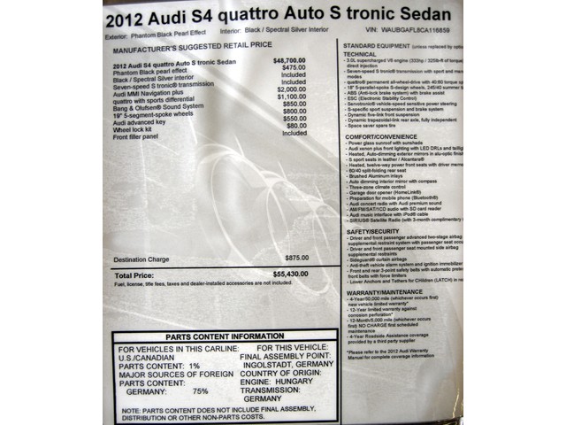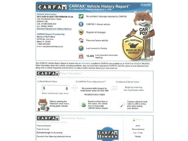 2012 S4 QUATTRO PREMIUM PLUS NAVI CARFAX CERTIFIED ONE FLORIDA OWNER LIKE NEW