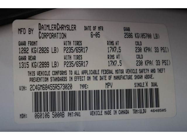 • VIN: 2C4GM68455R573020