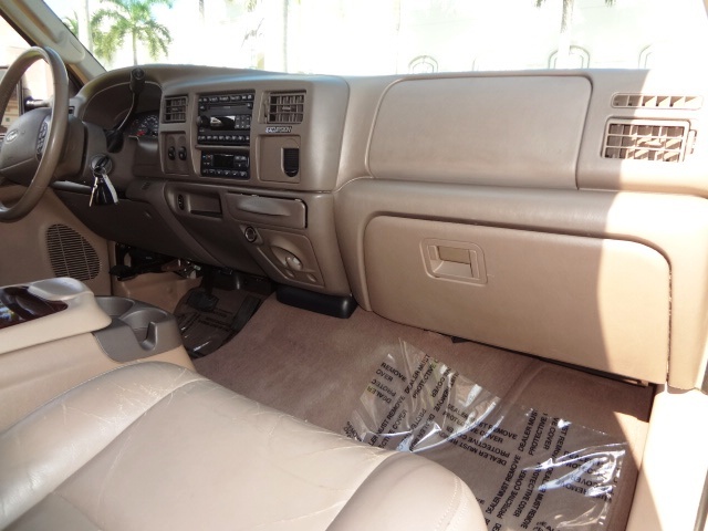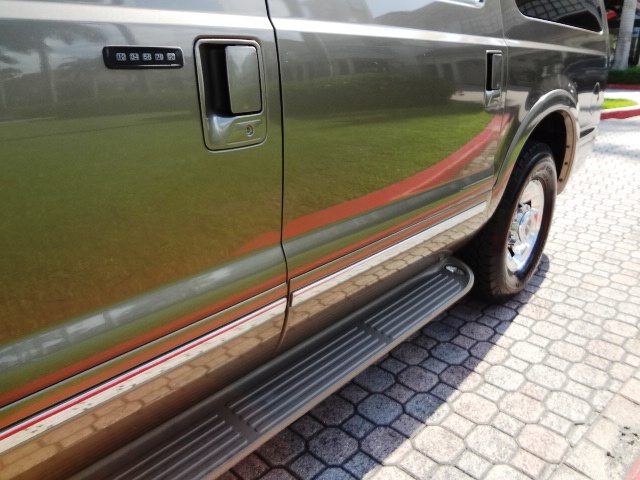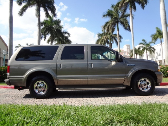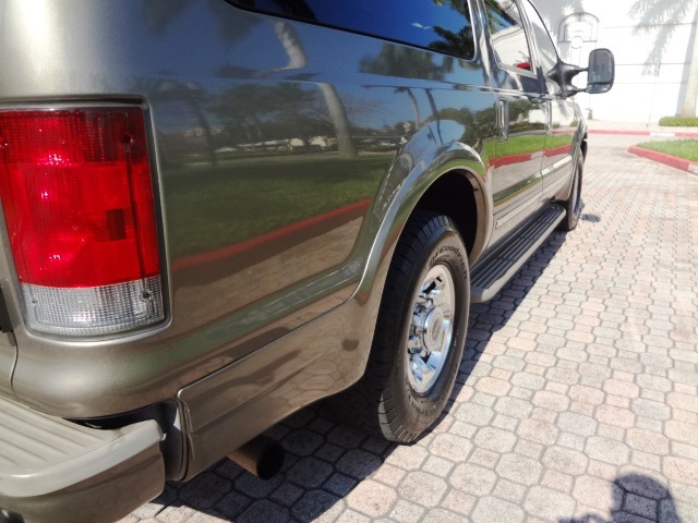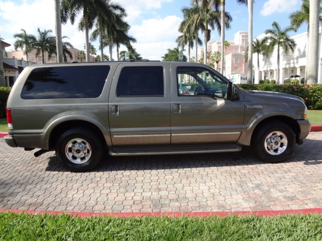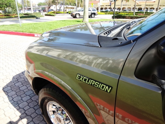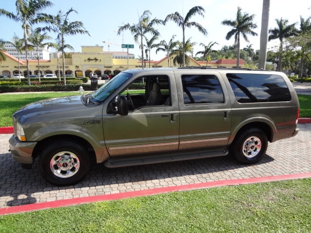 This 2003 Ford Excursion Diesel Limited is Fully Equipped with all the options including: Remote Keyless Entry, Dual Power Heated Leather Seating, Third Row Seating, Rear Entertainment System (TV/DVD), Premium 6 Disc CD Soundsystem, Beautiful Wood Grain Interior Accents, Running Boards, Tow Package, Power Rear Vent Windows, Embroidered Seats, Turbo Diesel Engine, and Much Much More. This Excursion is awesome! The engine and transmission are running beautifully. This Diesel runs very strong and transmission shifts perfectly. There are no modifcations under the hood. This truck has been babied. No leaks underneath. This truck drives nice and smooth down the road. The exterior of this Excursion is immaculate. The paint shines like new and the body is laser straight. The interior is pristine. The leather seats and carpet are very fresh. The carpet is like brand new. The original floor mats including the cargo mat are with the vehicle and in great condition. The original owner's manuals along with some service records are with the vehicle. There are two keys. This vehicle has it all. The Tires have plenty of life left on them. There are no stories at all with this Excursion. Jump in and drive across country. You will not be disappointed at all. Please let us know if you have any questions or concerns. We are happy to help at any time. Call Jeff or Ken at 954-561-2499 or email us at usedcars@suprememotorsfla.com