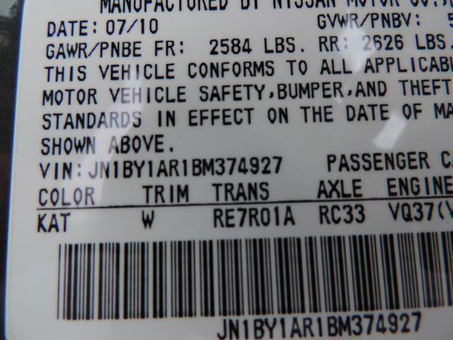 3 Month / 3,000 mile powertrain warranty, AWD, ABS brakes, Alloy wheels, Automatic temperature control, Electronic Stability Control, Front dual zone A/C, Garage door transmitter: HomeLink, Heated door mirrors, Heated Front Bucket Seats, Illuminated entry, Memory seat, MP3 decoder, Outside temperature display, Overhead console, Power moonroof, Remote keyless entry, Steering wheel memory, Steering wheel mounted audio controls, and Traction control. Confused about which vehicle to buy? Well look no further than this handsome-looking 2011 Infiniti M37. The pin-you-to-your-seat performance of this outstanding M37 will make it a favorite among our more passionate buyers.