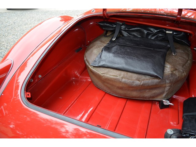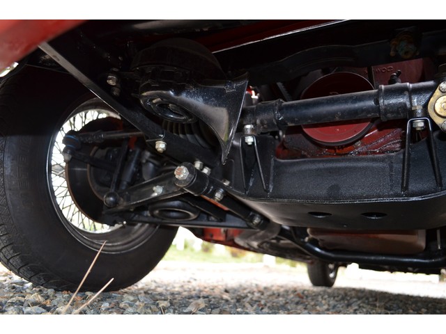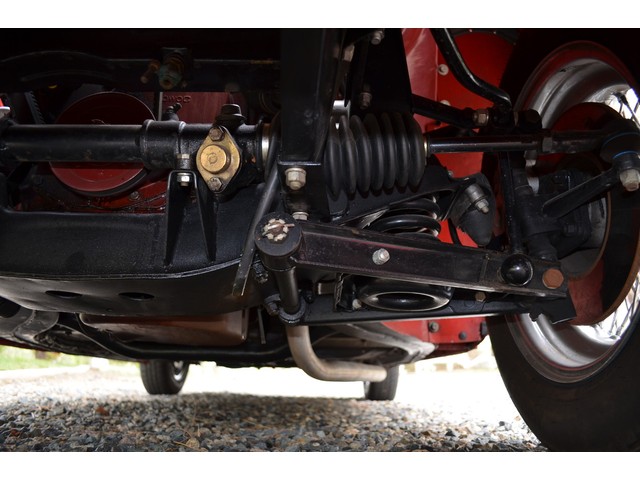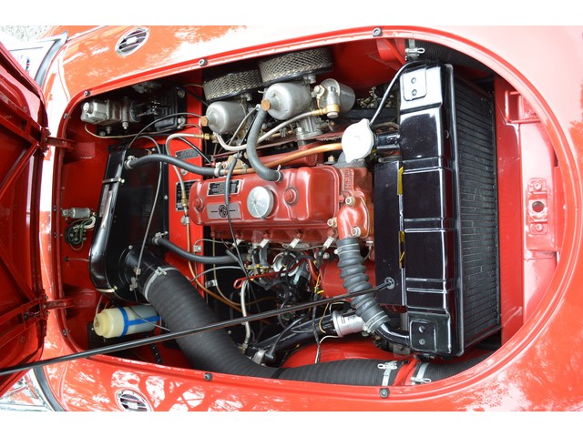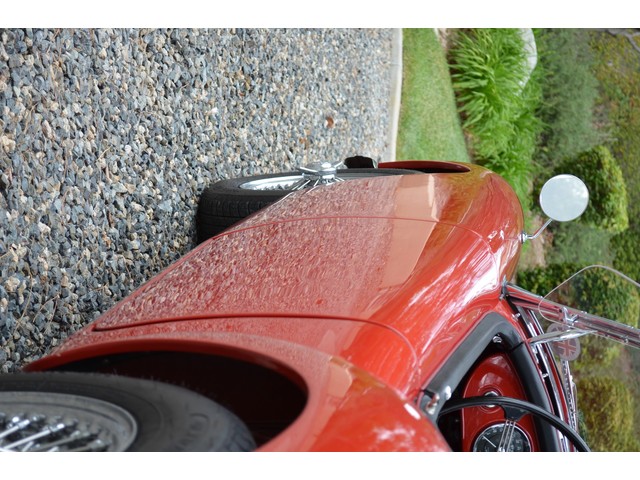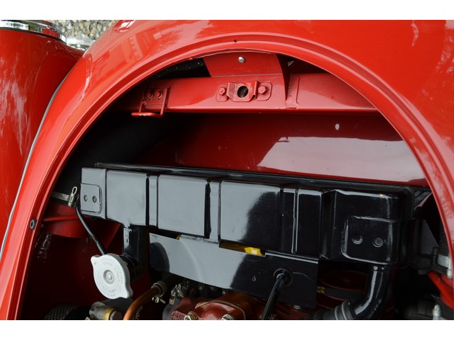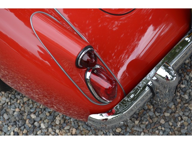 The coachwork maintains its original color combination of sexy and sporty red with soft and rich black correct interior. The distinctive look of the factory-spec paint and interior color combination is completed by Grey fender welting which subtly highlights the MG A’s streamlined full envelope design like a painted coachline.