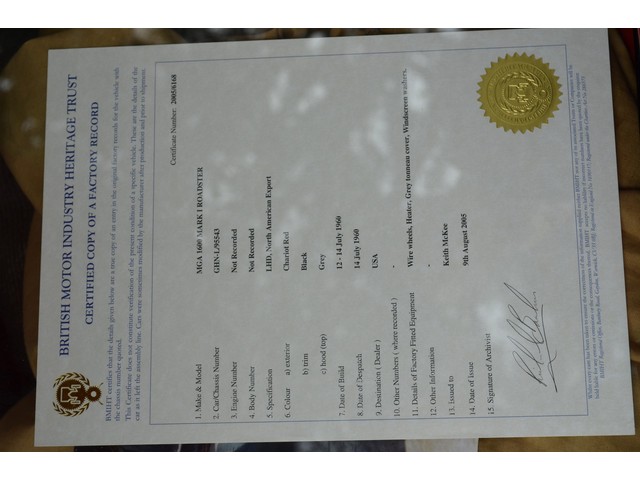 The engine and drivetrain are in excellent, “as new” condition. The motorcar intermittently puffs smoke, most likely a result of not being used as often as it wishes!  It will satisfy the most demanding MG owner or first time collector looking for a quality sports car that can be driven to shows and events and then polished up and shown with pride and pleasure.