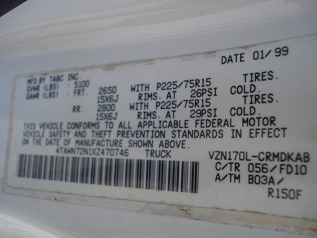 1999 Toyota Tacoma SR5 4WD V6, 4X4, Ext Cab NO RESERVE