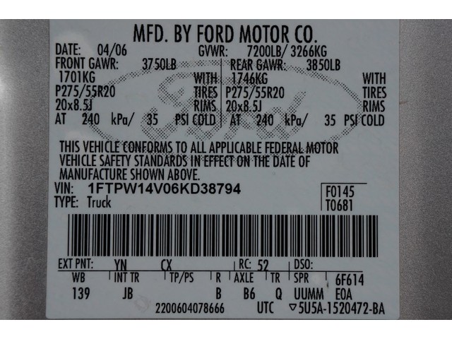 • VIN: 1FTPW14V06KD38794