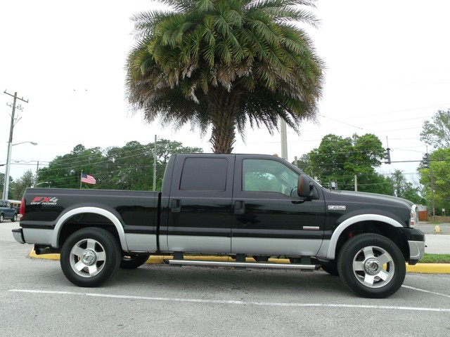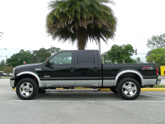2006 Ford F-250 Crew Cab 4WD 4x4 FX-4 OFF ROAD. It has the Lariat package. Has a nice two tone black & silver exterior color combo and gray leather interior seating that is in great condition with no rips, tears or bad smells. Everything works as it should A/c is cold, heat is hot, automatic transmission shifts through all the gears smooth and the 4 wheel drive engages/disengages properly. There is NO KNOWN mechanical problems with this truck and no signs of it ever being exposed to the northern salted roads, ice or snow therefore it is RUST FREE. I have included a copy of this trucks FREE Carfax report. Please click the link provided and it will redirect you to the FREE Carfax report. It is LOADED with options like chrome side step rails, driver keypad entry, heavy duty tow package, bed liner, rear back up sensors, adjustable heated side power mirrors, power windows & locks, power driver & passenger seats, cruise control, heavy duty rubber floor mats, power adjustable pedals, sliding rear window and nice 6 CD Player/AM/FM Radio. The tires are Michelin LTX/AT 275/65/R20 has 176k miles, but please look at all pictures of the exterior, interior, motor, undercarriage and Carfax history report so you can see how nice this truck really is. I am confident it will sell fast. With so many options, I know I have missed a few so please call me if you are wondering about something I did not list. Bid with confidence as Ashlyn Motors has been in business now for 10 years at the same location in Jacksonville, Florida and have over 600 positive transactions on EBay. We take our 100%  feedback very seriously and hope you will consider this when making your next vehicle purchase. Ashlyn Motor’s has been awarded EBay Motors “Premier Seller Award” the last four years now 2009, 2010, 2011 and 2012. Jacksonville is only two hours from Orlando (Walt Disney World, Epcot, Universal Studios and SeaWorld). Buy a vehicle from Ashlyn and make it a family vacation you will remember for a lifetime! We are known for truck’s and have many people stop byfrom time to time just to see what we have. Our inventory turns fast and most of my trucks sell long before auction end. So if this is the truck for you