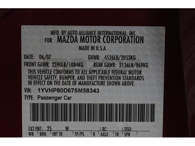 2007 Mazda 6 3.0L 212 horsepower 3.0 liter V6 DOHC sunroof leather low reserve