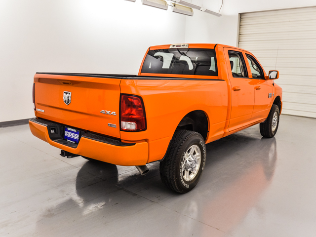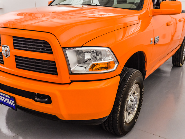 One of a kind 2012 Ram 2500 HD Quad Cab 4x4 short box.  This one owner trade was custom ordered for the unique orange exterior and leather interior on the ST pkg.  It has a tow pkg and bedliner.  The reliable 6.7L Cummins diesel is ready to work or play.