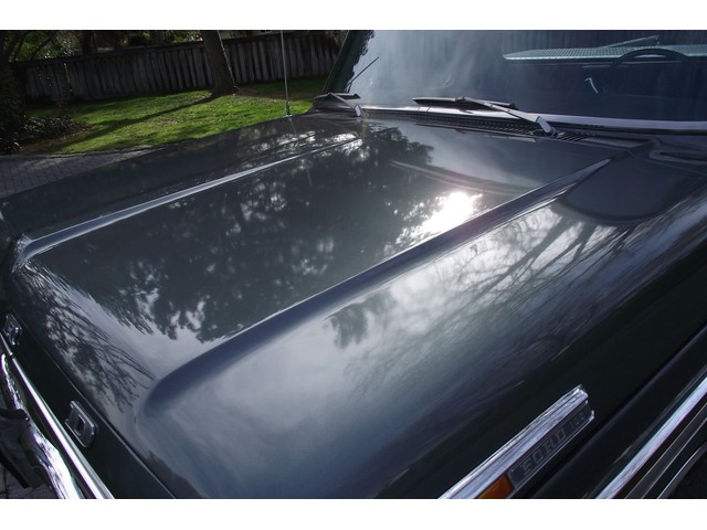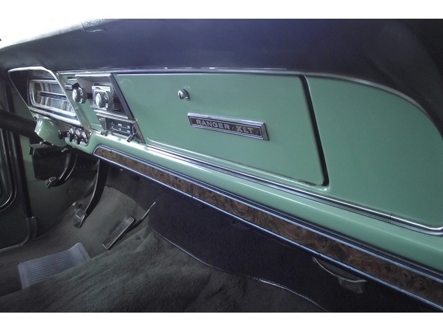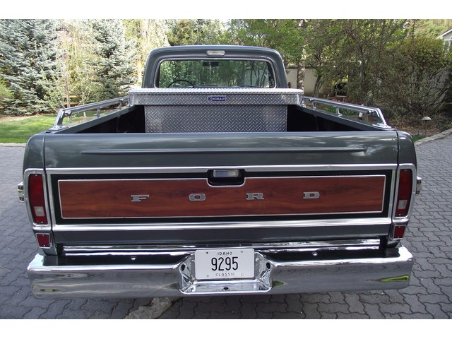 This Ford F100 Ranger XLT has original, STRONG, OPTIONAL code "Y" 360 CID V8 in it and it is running very well. The engine is backed by a smooth code "G" Three speed automatic transmission and a code "08" Ford rear-end with 3.50 gears both of which function very well. The code "W" Ivy Green Brocade cloth and vinyl interior is NICE and has the Ranger XLT trim level, including a NICE Original brocade cloth and vinyl bench seat, NICE original dash with correct woodgrain appliqué and nice original dash pad, NICE original gauge cluster, nice carpeted floors, nice Original headliner and sun visors, nice Original door panels with correct woodgrain appliqué and nice original steering wheel. This truck is nicely equipped including power steering, factory heavy duty power brakes, factory gauge package, Factory cargo light, Factory side toolbox (with no rust), dual chrome exterior mirrors, good heater and defroster and front seat belts. It has an era Bowman Am Fm stereo 8-Track tape player with Realistic speakers. This truck is a great running and wonderful looking Pickup. This Ford F100 1/2 Ton Ranger XLT has GOOD looks and GREAT power as well ! These vehicles have an appreciative group of owners any of which would be pleased to own this one. The brakes are new as is the stock style exhaust and in good working order as is the electrical system.