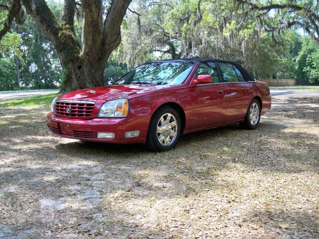 LOOK AT THIS 2002 CADILLAC DEVILLE DTS, IT IS FULLY LOADED WITH ALL THE OPTIONS, IT HAS A CLEAN CLEAR ACCIDENT FREE CARFAX, SHOWS TO BE A 2 OWNER CAR, CARFAX INDICATES IT HAS HAD A EXCELLENT SERVICE HISTORY, SHOWS 18 DIFFERENT SERVICE RECORDS, TO SEE ACTUAL CARFAX REPORT CLICK CARFAX ICON BELOW, THE CAR IS A BEAUTY, GREAT LOOKING COLOR "CRIMSON PEARL", VERY CLASSY LOOKING WITH THE FACTORY CHROME WHEELS AND THE CARRIAGE ROOF. IT HAS 70% MICHELIN TIRES. THE EXTERIOR PAINT IS IN VERY NICE SHAPE, IT IS NICE AND SHINY, HAS ONE SMALL SPOT OF IMPERFECTION ON THE PASSENGERS SIDE LOWER FRONT BUMPER COVER (SEE PICTURES), BUT HAS NO ACCIDENT HISTORY. THE CAR RUNS AND DRIVES GREAT, IS FULLY LOADED WITH OPTIONS INCLUDING LEATHER INTERIOR, WHICH IS IN VERY NICE SHAPE ( NO RIPS OR TEARS), SAME WITH THE CARPETS, STILL SMELLS NEW INSIDE. IT HAS HEATED FRONT AND REAR SEATS ALSO, EVEN HAS A REMOTE START ON THE CAR, WITH KEYLESS ENTRY, COMES WITH 2 REMOTES AND 2 SETS OF KEYS, CENTER CONSOLE SHIFT, BOSE STEREO SYSTEM, NADA SHOWS A VALUE ON THE CAR AT $5,975, BUT WE ARE STARTING THE CAR AT ONLY $99 WITH NO RESERVE, SO THE LAST BIDDER WILL WIN IT. PLEASE CALL ME AT 904-303-8910 IF YOU HAVE ANY QUESTIONS, OR NEED A SHIPPING QUOTE. THANKS FOR LOOKING AND GOOD LUCK WITH THE AUCTION.