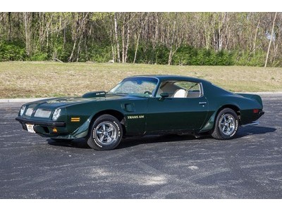 This 1974 Pontiac Firebird has a 455 C.I. Performance Built V8 w/ Holley 4BBL Carburetor, TH350 Automatic Transmission, 8.5” Rear w/ 3.42:1 Ratio, Correct White/Green Vinyl Interior, Super Duty 455 Clone, Trans Am Decals, Power Steering, Power Disc Brakes, Edelbrock Aluminum Heads, Aluminum Radiator, Edelbrock Performer Intake, Original Air Conditioning Car, Power Windows, Tilt Column, Tachometer w/ Clock, AM/FM/Tape Stereo w/ 8-Track, Dual Exhaust w/ Chrome Tips, Rallye Wheels w/ Trim Rings, Cooper Cobra White Letter Radials, Space Saver Spare In Trunk, Performance Built Firebird That Is Sure To Impress Anyone That Gets Behind The Wheel!!