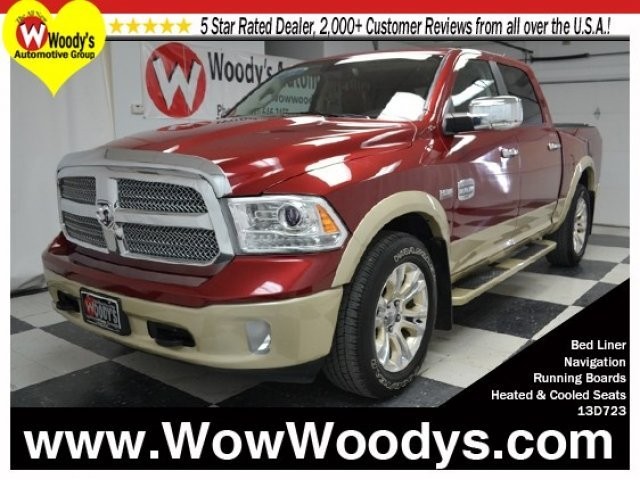 2013 Ram 1500 Laramie Longhorn Crew Cab 4x4 5.7L V8 HEMI Sunroof, Leather & Heated/Cooled Seats, Uconnect 8.4AN HD/BT/Navigation, Alloy Wheels, Running Boards, Remote Start, Bed Liner, Bed Cover, Tow Package, Tow Hooks, Power & Memory Seats, Rear Heated Seats, Dual Zone Climate Control, Leather & Heated Steering Wheel, Bluetooth Streaming Audio, Alpine Sound System w/Subwoofer, Backup Camera, USB Port, Certified Warranty. Goes from alpha to bravo in the blink of an eye. Rises to the call of duty. Who could say no to a truly fantastic truck like this rock solid 2013 Dodge Ram 1500? This dependable reliable Ram 1500, with grippy 4WD, will handle anything mother nature decides to throw at you during one of her bad days at work.Price includes $500 instant rebate when financed through a Woody's Lender.Want a custom video? Just text your first & last name and the stock# to 660-247-5319.This vehicle's stock# is 13D723-420 |Check out www.woodyswow.com to see why we're different! Woody's is an Honest, Up-Front, One Price Dealership selling new & used cars in the greater Kansas City area. Check out what over 2000 customers are saying at over2000reviews.com When it comes to Price, we're third party verified among the lowest In The Nation! This vehicle is certified with a **Pre-Owned Warranty** at no cost to you!Not sure which vehicle you want? With the largest 10AcreMegaLot and most diverse inventory in Middle America you can view all makes in one location! Check out our website to see 800+ vehicles, 50+ Pictures, Videos, Free History Reports and more! www.wowwoodys.com You can search by payment, get a trade appraisal, and setup financing all at www.megawoodys.com now or just call us toll free at (888) 881-0393 to schedule a test drive.The majority of our vehicles qualify for Woody's Assurance Program which includes a 12 Month Return Policy, Limitations Apply, See Dealer for Details.Some of our customers say, Help me find a car or just find me a car We can find you any used car, used truck, used suv. Plus, We will pick you up at the airport or ship your vehicle to you! Our award winning Finance Management Team works with over 15 local and national banks to get you the best rate and term. If you would like to save time just visit our www.wowwoodys.com website to access our Trade Appraisal Tool and Online Secure Credit Application. We also offer an online payment calculator so you can setup different down payment/monthly payment options.[Image]