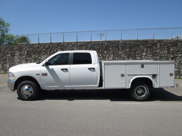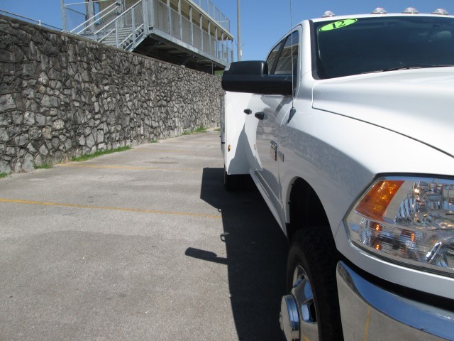 Ok if you are needing to add a crew cab 4wd 1 ton truck with a utility bed to your fleet but not quite ready for a new because of the cost wait no longer this is a great oppertunity!  It is a 2012 Ram 3500 Crew Cab SLT 4wd Cab & Chassis with a Knapheide 6 door locking utility body.  It is every companies color preference, white with graphite & gray cloth, the drivers seat is power and being a SLT it has power windows, power locks, tilt, cruise and an AM FM CD MP3 Satellite capable radio.  It has factory trailer brake along with a trailer 7 pin connecter and a reciever hitch!  It has 40/20/40 seating up front so it can handle a crew of 6 if you need to.  It has the 5.7 liter HEMI with an automatic transmission, with the extra cost of diesel along with the extra cost of maintainence + the extra cost in the purchase of a diesel over a gas burner you are saving a lot by purchasing this used vehicle over a new diesel unit!  Your crew will appreciate this very well kept truck with great equipment too!  Look at the last few pictures to see the minor scrapes, scratches and dents to the utility body, the cab and interior are near perfect.
