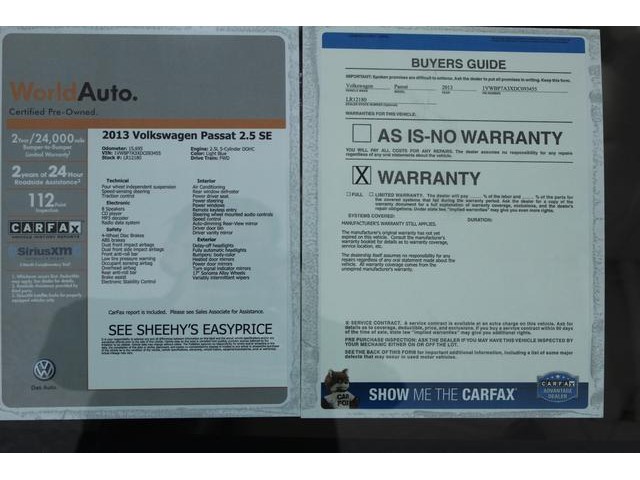 2.5L SE W/ SUNROOF. LEATHER. HEATED SEATS. POWER SEATS. TOUCH SCREEN RADIO WITH 6 DISC CD PLAYER. BLUETOOTH. DEALER MAINTAINED. VOLKSWAGEN CERTIFIED PRE-OWNED. BALANCE OF FACTORY WARRANTY PLUS 2 YEAR/24,000 MILE LIMITED WARRANTY WITH 24/7 ROADSIDE ASSISTANCE. CONTACT OUR SALES TEAM TO SET UP A TESTDRIVE TODAY (1-888-672-8636)