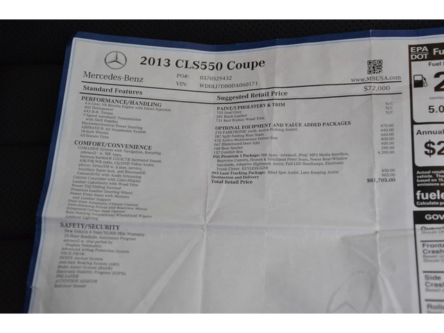 Premium 1 Package: MB Apps-mbrace2, ipod/MP3 Media Interface, Rearview Camera, Heated & Ventilated Front Seats, Power Rear-Window Sunshade, Adaptive Highbeam Assist, Full-Led Headlamps, Electronic Trunk Closer, KeyLess, Blind Spot Assist, Lane Keeping Assist.