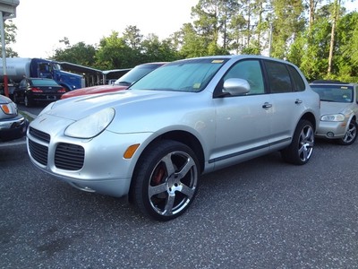-New Arrival- -Priced Below The Market Average- Heated Front Seats, All Wheel Drive, High Intensity Headlights, Active Suspension, and Cruise Control This Silver 2005 Porsche Cayenne TURBO 4X4 is priced to sell fast! This Cayenne has a very popular Silver exterior color with a Black interior that looks fantastic! Coggin Toyota at the Avenues prides itself on value pricing its vehicles and exceeding all customer expectations! The next step? Give us a call to confirm availability and schedule a hassle free test drive! We are located at: 10564 Philips Highway, Jacksonville, FL, 32256. **Price excludes tax, tag, dealer installed options, $98 private tag agency fee and $699.00 pre-delivery service fee. The options and features include: 2-Way Adjustable Head Restraints, Driver & Front Passenger Frontal Airbags, Exterior/Interior Alarm Systems, Front Seat Side-Impact Airbags, HomeLink Universal Transceiver, LATCH Child Safety Seat Anchor System, Parking Assist System, Side-Curtain Airbags, AM/FM Stereo w/Compact Disc Player, Automatic Climate Control System, Bose 14-Speaker Audio System, Cruise Control, Driver Memory System, Heated Front Seats & Steering Wheel, High-Res 5-Inch Color Display, Leather/Leatherette Upholstery, Power Adjustable Steering Column, Power Front Seats w/Power Height Adjust, Power Windows w/One-Touch Up/Down, Bi-Xenon Headlights w/Dynamic Leveling, Dynamically Controlled Static Cornering Light, Headlight Washer System, Heated Windshield Washer Nozzles, Integrated Front Fog Lights, Power Heated Exterior Mirrors, Rear Window Wiper, Remote Keyless Entry System, 4-Wheel Anti-Lock Disc Brake System, Permanent All-Wheel Drive System, Porsche Active Suspension Management System, Porsche Traction Management System, Speed-Sensitive Power Steering