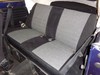 Inside, the upholstery is all new but in a velour texture. It looks good, but nothing like the original. Carpets and door panels are nice, but the headliner has some stains. There is an aftermarket CD stereo that appears to work well, but the speakers are not connected. Possibly an unfinished installation.