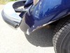 The paint is a non-original midnight blue but was the color change was done very well. Every door jamb, underpanel, and hidden area matches, and most rubber seals appear new as well. Unfortunately the right rear fender is scraped / dented and will require a bit of straightening. The top is original, and has a small hole. (see photo)