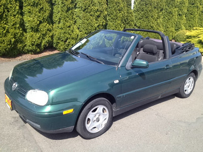 Up for auction is a 2000 VW Cabrio GL Convertible. This car is running a 2.0 liter 4 cylinder with an automatic transmission. This was a local trade in. The car is equipped with tilt wheel, cruise control, A/C, AM/FM cassette with CD changer, power windows, power door locks, power mirrors, heated cloth seats, manual convertible top and alloy wheels. The body on this car is very straight with the exception of two small dings on the passenger side of the car on both wheel lips less than the size of a dime and a small hole in the rear bumper cover "see photo". The paint could stand a good buff and wax, it has some scratches in it none of which are real deep and there is a little clear coat coming off the top of the front bumper, also in photos. One of the alloy wheels is gone, it does have a spare in the trunk. The tires are in good shape. The interior and top are in very good condition. The drivers seat back on the lower left could be repaired and the back rest pull handle need be replaced. This is also in the photos. The Cabrio runs and drives very well, I believe we have put nearly 80 miles on it since it came in. If you are looking for a fun little car this summer, here it is! Buyer is responsible for all shipping arrangements and cost associated with it. There will be a $75 documentation fee added to the final price. We reserve the right to end the auction early because this vehicle is offered locally as well. Call, Click, or Drive Today! Don't forget that we have a great selection of new and pre owned cars and trucks of all makes and models. 'Pick up the phone and call us today' 'We do Free Carfax Reports for every vehicle!' For more information please contact "Rob" 503-769-7691