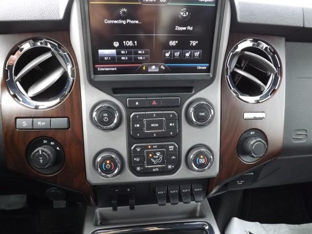 LARIAT ULTIMATE PKG: pwr sliding moonroof, pwr heated/cooled front seats w/easy entry/exit memory feature, PowerScope trailer tow mirrors w/memory, remote start system, pwr adjustable pedals w/memory, navigation system w/satellite radio, rear view camera, tailgate step, CHROME PKG: 18 chrome clad wheels, chrome exhaust tip, chrome tow hooks, unique chrome mirror caps, chrome pickup bed tie-down hooks, 6 angular chrome step bars, NAVIGATION SYSTEM W/HD RADIO & SATELLITE BROADCASTS, FX4 OFF ROAD PKG: hill descent control, transfer case & fuel tank skid plates, unique FX4 Off Road decal, Rancho branded colored front/rear shocks. Lariat with Tuxedo Black Metallic exterior and Black interior features a 8 Cylinder Engine with 385 HP at 5500 RPM*.