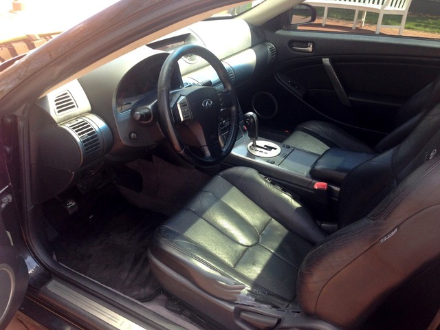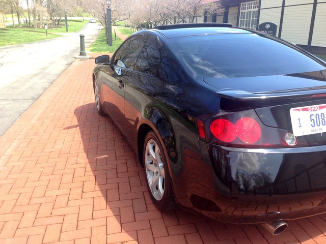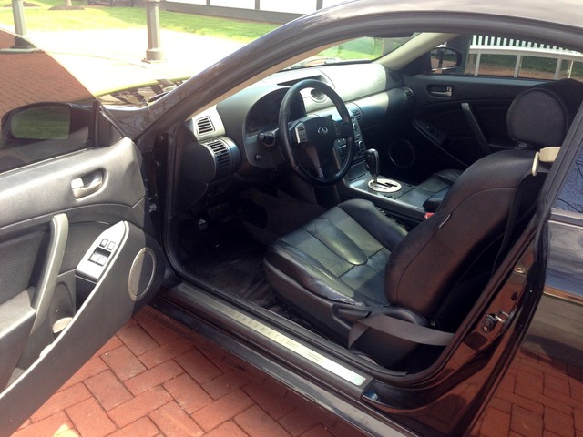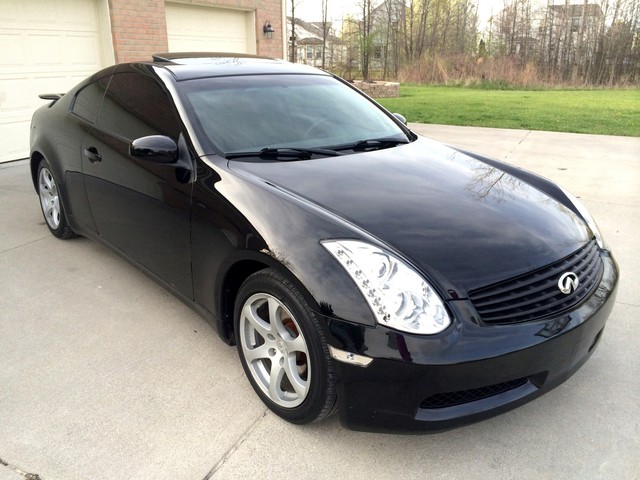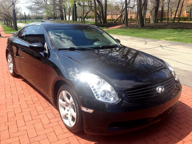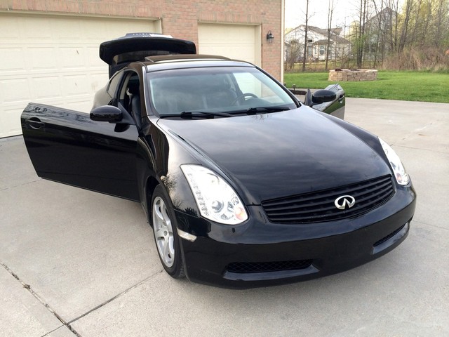 Today we have for you a 2003 Infiniti G-35 Coupe finished in Obsidian Black with  Black  interior,Adult Owned non-smoker in beautiful condition.The body is 100% rust free as is the undercarraige,The paint is amazing and there no  scuffs or scracthes and extremely minimal rock chips on front lower bumper.All electronics function as they should,the motor is extremely quiet and the transmission is smooth.This is a prime example of 95% stock unmolested G-35,was owned by a older gentlemen who then passed it on to his grandson for a few weeks,then traded it in for a truck with us.