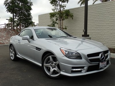 Hoehn Mercedes-Benz of Carlsbad proudly presents this certified pre-owned 2013 SLK in iridium silver with black leather interior and aluminum trim. The premium package includes ipod/mp3 media interface, airscarf ventilated headrest, Sirius satellite radio, harmon/kardon sound system, heated front seats and remote roof automation. Additional features include illuminated door sills, rear deck spoiler, bi-xenon headlamps with active curve illumination, 18 AMG 5-spoke wheels, sport bodystyling and suspension, becker map pre-wiring and keyless-go. Your competitive price of $45,890 reflects Hoehn Motors' conviction that Mercedes-Benz is indeed world class for everyone.