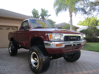 ******************PLEASE WATCH THE VIDEO AT THE END OF THIS DESCRIPTION**************ABSOLUTELY GORGEOUS 1990 TOYOTA TACOMA 4X4 6CYL THAT IS JUST AWESOME...YOU WILL LOVE IT...THE INTERIOR LOOKS FANTASTIC AND THE EXTERIOR IS LIKE NEW...IT RUNS AND DRIVES AND RIDES EXCELLENT...LIKE NEW TIRES 33" WITH PLENTY OF TREAD REMAIMING...THIS IS A VERY RARE TOYOTA TACOMA THAT WILL SURLY BE A COLLECTABLE AND VERY DESIRABLE...GOT A BUNCH OF THUMBS-UP JUST DRIVING IT AROUND, PEOPLE LOVE IT AND SO WILL YOU....MILES ARE EXEMPT ON TITLE, VEHICLE IS OVER 10 YEARS OLD.****************IF YOU HAVE ANY QUESTIONS PLEASE CALL JACK @727-460-4283 OR CAROL @ 727-798-7161 OR EMAIL US. THANK YOU GOD BLESS YOU AND HAVE A GREAT DAY....ENJOY THE VIDEO...I HAVE PUT A LOW RESERVE ON IT FOR QUICK SALE, IF I DON'T DECIDE TO KEEP IT MYSELF:)
