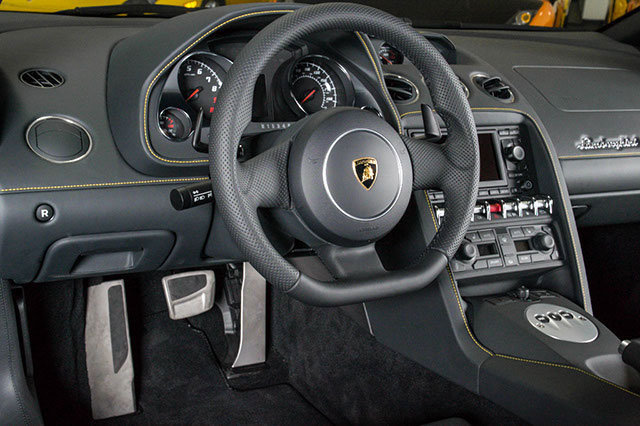 This is a brand new 2014 Lamborghini Gallardo LP550-2 Cpe equipped with a 5.2L 550HP V10 engine and a 6-speed E-Gear (Paddle shift & Auto) transmission. This car is finished in a gorgeous Nero Noctis (Gloss Black) exterior color and Nero Perseus (Black) full leather sportive (perforated) interior along with Yellow contrast stitching throughout.