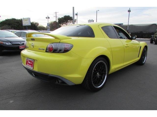 This 2004 Mazda RX-8 4dr 4dr Cpe 6-Spd Manual Coupe features a 1.3L R PFI rotary Gasoline engine. It is equipped with a 6 Speed Manual transmission. The vehicle is Lightning Yellow with a Black Full Leather interior. It is covered by a limited warranty. - This 2004 Mazda RX-8 Sport is a 1.3L 4 Cylinder ready to satisfy your transportation necessities. this Mazda is a little weight vehicle which benefits mostly through the car's gas mileage. This vehicle is able to travel 24 miles on one gallon and delivers a comfortable driving experience. Standard features include power windows\, power locks\, power seat\, power mirrors\, multi function steering wheel controls\, AM/FM stereo system with CD/Cassette input\, BOSE premium speaker system\, dual heat warmers\, sunroof\, and much more. Exterior features include black HP Design rims and a beautiful and clean yellow to compliment its compatible black rims. This Mazda is CARFAX certified and comes standard with our 30 day worry free guarantee. Please do not hesitate to contact us with any questions you may have. - Air Conditioning\, Power Steering\, Power Windows\, Tilt Steering Wheel\, Driver Airbag\, Passenger Airbag\, ABS Brakes\, AM/FM\, CD Player\, Full Leather Interior Surface - Contact Harbor City: 310-830-0033 / Lomita: 310-784-0600 / Fontana: 909-452-8262 at See-Locations or admin@jimsautosalesla.com for more information. -