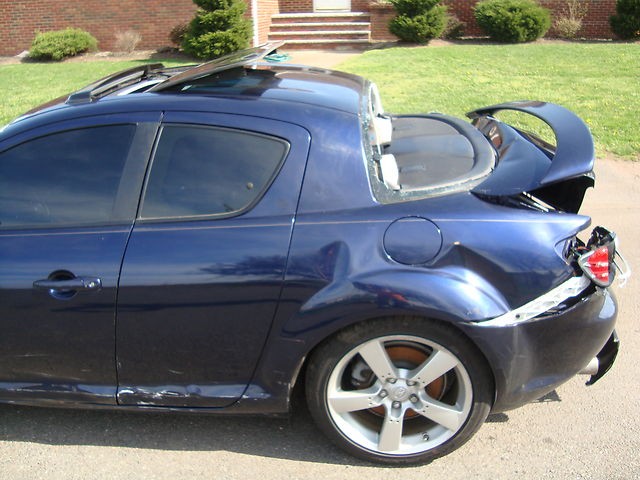 As seen in the pictures below this nice looking 2007 Mazda RX8 has mainly sustained a rear end damage. This vehicle was directly purchased from insurance auctions for resale in the condition you see it on the pics. No middle man involved. Such vehicles can be legally returned back to the roads after repairs and your state motor vehicles inspection. Damaged areas are clearly shown in the pictures which is mainly to the rear end the light right side scrape. The good news is that the car starts, engine runs great, goes into gear and we are able to drive it around within our lot. All airbags are good!!! No airbag deployment. No suspension damage observed and steering is straight. Interior is in good condition with nice looking cream/white leather heated seats. Comes equipped with heated pwr seats, sunroof, Bose sound, 6-Speed manual tranny, and low 66k miles! Please see below for many detailed pics and ask any questions you might have before the purchase and not after.