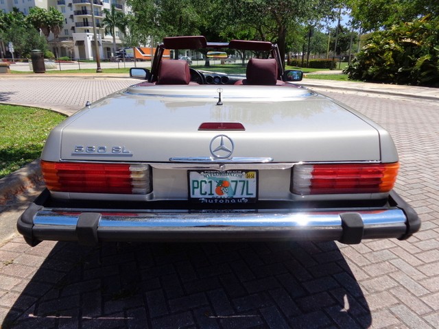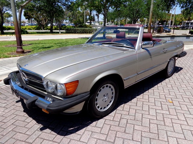 Hi and thank you very much for stopping by for our "No Reserve" auction for this lovely, clean Carfax history, collectors classic car, very good mechanically, 1988 Mercedes-Benz 560SL two-seater roadster with removeable hard top and a "Black" soft top that looks as good as new. Thoroughly checked out and serviced, she is ready to go! According to the Carfax report, she is $ 120 above retail book value. She is internally known as the "R107" and has been a Florida car the majority of her life. Simplicity, superb build quality and an enduring design are all hallmarks of the Mercedes 560SL. The mint "Red", leather interior looks amazing, very clean, very nice! The headliners on both tops look very good, the tires are new and they ride on 15" alloy wheels. She features, 4-wheel disc brakes, rear defogger, burlwood interior accents, spare tire, power windows, tachometer, leather seats, owner's manuals, chrome bumpers, fog lights, power passenger mirror, 5.6L V8 engine, leather steering wheel and more! The engine runs really strong and smooth as evidenced when I personally drove her. This roadster glides along the highway and handles the windy roads with ease and in silence. The 4-speed, automatic, transmission shifts right on time, no hard shifts. The all original, "Champagne", metallic exterior shines like the Florida sun, some normal chips and minor touch-ups, overall the paint is great. Mercedes got it all just right on this 560SL, offering essentially bullet-proof reliability, satisfying power and aggressive good looks. All of our vehicles are free from any and all liens. You will receive a clean title. We also use our detailed pictures as a physical description so look at them all. Pre-sale inspections are welcomed and encouraged. Read our "terms and conditions" below. Please do not assume anything. Aside from Ebay's finance, we do offer financing possibilities as well as we do accept trade-ins. Please provide VIN# and photos. If you have any questions about this or any of my other auctions, or would like a "Buy It Now Price" through ebay, please feel free to contact me, Avi Fraser, via email at avi@rollingwheelsinc.com or you can call me, in the office, at 954-527-5522 and I will be happy to help you. We are always willing to negotiate and 4 SURE, WE WILL MAKE A DEAL WITH YOU! Thank you for your interest and I look forward to hearing from you! Visit our location at Rolling Wheels 125 E. Sunrise Blvd. Ft. Lauderdale, Fl. 33304. We are open, M-F, 9am-5pm. Saturday, 9am-4pm. Closed Sunday and holidays.