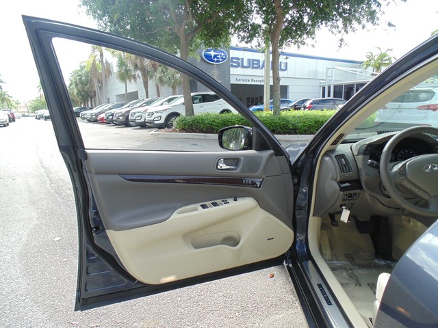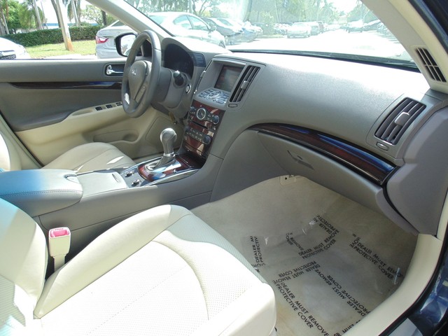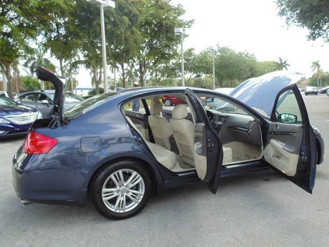 Previous owner purchased it brand new! Want to save some money? Get the NEW look for the used price on this one owner vehicle. It is nicely equipped with features such as 3.7L V6 DOHC 24V, Alloy wheels, Bluetooth, Leather-Seat, One Owner Florida Driven Car, Sunroof/Moonroof, 4-Wheel Disc Brakes, 6 Speakers, ABS brakes, Air Conditioning, AM/FM radio, AM/FM/CD Player w/MP3/WMA Capability, Anti-whiplash front head restraints, Auto-dimming Rear-View mirror, Automatic temperature control, Brake assist, Bumpers: body-color, CD player, Delay-off headlights, Driver door bin, Driver vanity mirror, Dual front impact airbags, Dual front side impact airbags, Electronic Stability Control, Four wheel independent suspension, Front anti-roll bar, Front Bucket Seats, Front Center Armrest, Front dual zone A/C, Front fog lights, Front reading lights, Fully automatic headlights, Garage door transmitter: HomeLink, Heated door mirrors, Heated Front Bucket Seats, Heated front seats, High-Intensity Discharge Headlights, Illuminated entry, Leather Appointed Seating, Leather Shift Knob, Leather steering wheel, Low tire pressure warning, MP3 decoder, Occupant sensing airbag, Outside temperature display, Overhead airbag, Overhead console, Panic alarm, Passenger door bin, Passenger vanity mirror, Power door mirrors, Power driver seat, Power passenger seat, Power steering, Power windows, Radio data system, Rear anti-roll bar, Rear reading lights, Rear seat center armrest, Rear window defroster, Remote keyless entry, Security system, Speed control, Speed-sensing steering, Speed-Sensitive Wipers, Steering wheel mounted audio controls, Tachometer, Telescoping steering wheel, Tilt steering wheel, Traction control, Trip computer, and Variably intermittent wipers. Consumer Guide named the G37 a 2011 Premium Midsize Car Best Buy! It's the combination of advanced design and precision engineering that makes the 3.7L V6 DOHC 24V engine such an impressive powerplant.