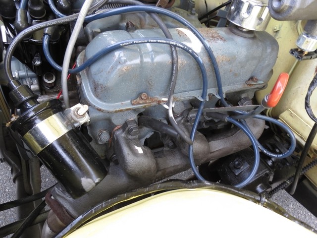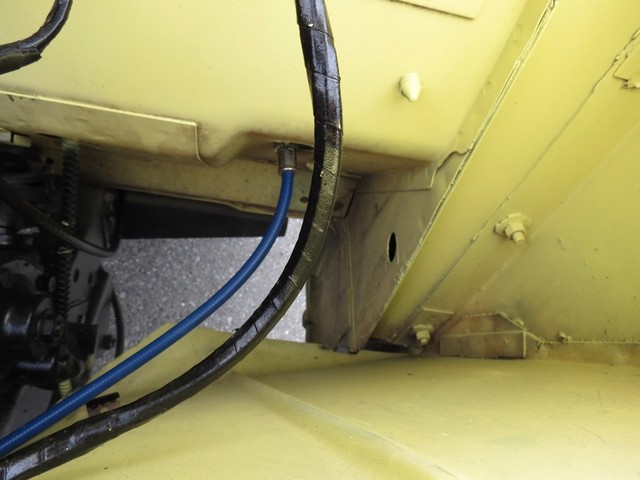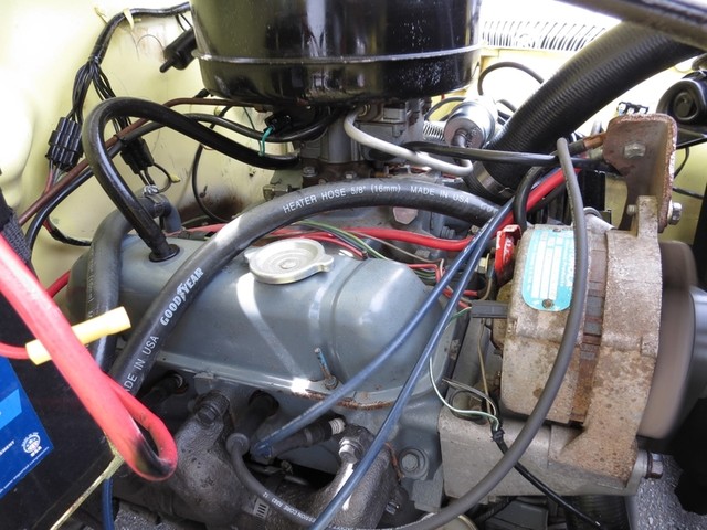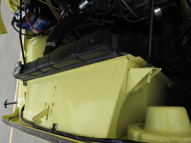 PAINT HAS BEEN REFINISHED IN A BEAUTIFUL BUTTERNUT YELLOW /WHITE A WHITE RE-MOVABLE HARD-TOP !  THERE ARE NOT ANY BUBBLES OR BLISTERS COMING THROUGH ANYWHERE THAT WE CAN FIND ! SHEET METAL LOOKS TO BE ALL ORIGINAL INCLUDING THE FLOORS . THE SEATS HAVE BEEN RE-COVERED FRONT AND REAR IN A BEIGE CLOSE TO FACTORY COLORS !