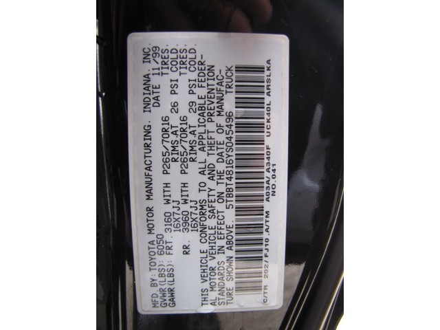 This 2000 Toyota Tundra 4WD Limited Eddition 4 Door Access Cab with a 4.7L V8 Engine and Automatic Transmission is a exceptionaly nice rare vehicle. Fully loaded with such great options: Leather Interior, Power Seats, Self Dimming Rear View Mirror, Tow Hitch, TRD Package, Fog Lamps, "Rhino" Bed Lining, Running Boards, Hard Bed Cover doesn't operate very well, but may be easily fixed or removed if not needed. It is very clean and well taken care of by it's  2 previous non-smoking owners. Never in accident, clean Carfax report. No noticeable dents, dings or scratches. Normal wear and tear through out the body of the vehicle (see detailed pictures). Absolutely no rust on any of the body panels. Brand new Frame by Toyota. Minor rust maybe found on some small components as bolts, nuts and brackets, but that's about it. Vehicle was held and driven in pretty much rust free environment. Interior is very clean. No stains, no wear or tear. No foul odor. Nothing's missing or broken. Mechanically this Tundra's in great shape. Runs and drives 100% Timing belt had been replaced twice, last time was in 2012 with 217k on the cluster. Does not pull to a side does not shake or rattle. Engine and transmission perform excellent. No foreign noises, no kicks or delays. Suspension is tight. 4WD work perfectly well. No warning lights are displayed. All the signal lights and dash lights are in perfect working order. Radio and other power options work great. The spare wheel and tire is present and holds air fine. No leaks of any kind. No exhaust leaks either. Motor oil and filter's had been recently changed. Good brakes and rotors. Tires still have about 65-75% tread left on them. Serviced, inspected and test driven. Clear title on hands, Ready to go. For more info call us at 917-273-4066 Thank you.