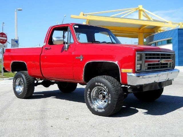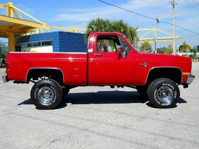 Stay above your peers in this high riding Chevy 4X4 short bed pick up. This truck has a super clean, and straight rust free body refinished in fire engine red. The professionally installed Tuff Country lift ( 3 leafs front / 6 leafs rear / 4 gas shock's ) along with a matched Edlebrock aluminum Intake/ Carburetor setup and Chrome engine dress-up kit, includes leak free header's and dual exhaust. It features American Racing wheel's with 33x12.50 R15 tires and locking hub's. A Sony Explode CD MP3 player round's out the package. The 4 speed manual transmission is smooth shifting and the 4X4 system is functional in both high and low ranges. It has a new head liner and lot's of new parts. 100% road worthy and reliable, eager to start and runs perfectly with plenty of power. Please call with specific questions. 941-928-2339 www.americanclassiccarsales.com We ship, we finance, we trade.