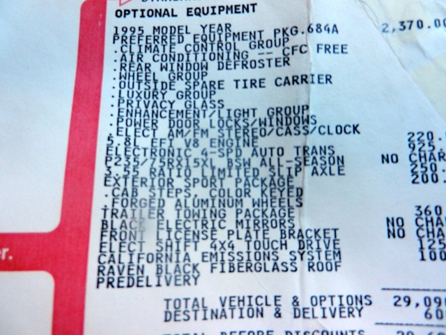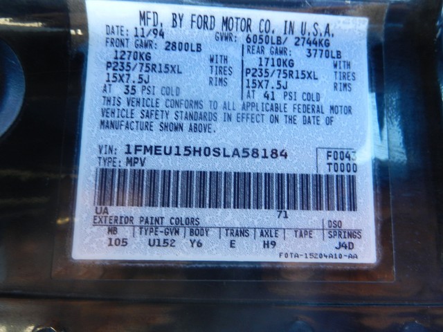 Vehicle: 1995 Ford Bronco Eddie Bauer / XL / XLT (1FMEU15H0SLA58184)