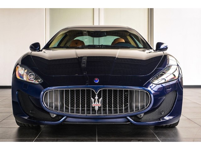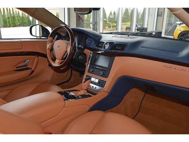 2013 Maserati GranTurismo in Blu Oceano with Cuoio hide interior and Walnut Briarwood Veneer. Additional features include Alcantara Headlining, Exterior Chrome Pack, Carpet Piping, Trident Stitching to Headrests, Wood/Leather Steering Wheel, 20" 7 Spoke Neptune Silver Wheels.