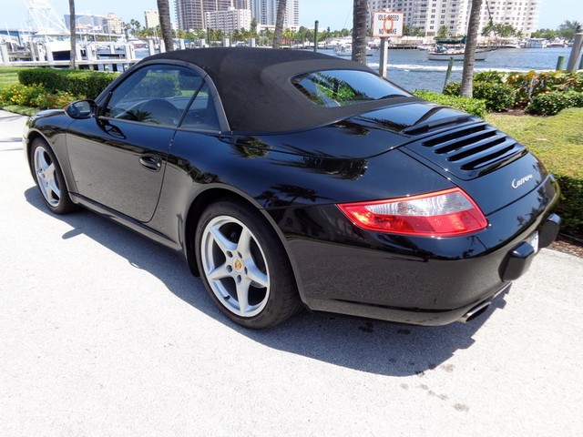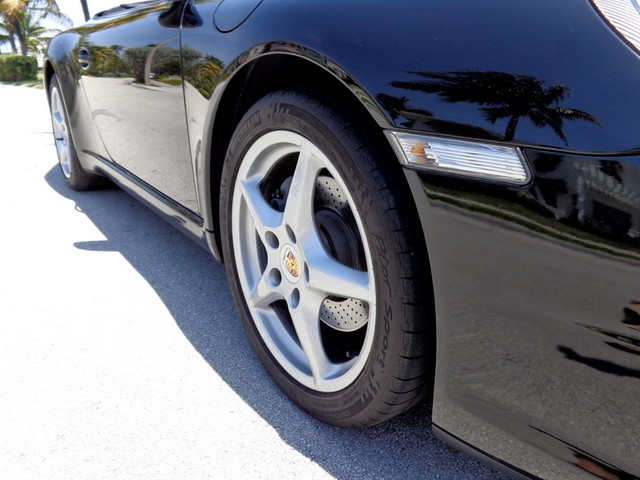 Hi and thanks for stopping by our auction for this, Florida, Sharp, Outstanding Mechanical Condition, 6-speed manual, Fully Serviced, Garaged, 2005 1/2 Porsche 911 New Body 997 Carerra Cabriolet. Clean Carfax history report on this one! According to the Carfax report she is above retail book value! We had her up in the air, on a lift and there are no leaks, dry and solid, very well maintained. As you can see in the many detailed pictures taken the "Ebony Black" exterior paint shines like the Florida sun! Real straight and very clean! The "Black" leather, seats are all original hide and look good. This Porsche 911 is an automotive icon, a world-class standard in sports cars. Many of us grew up wanting one. The brakes are great and the air conditioning is ice cold. The 6-speed manual transmission shifts easily through the gears, clutch feels great. I have personally driven this sports car and I must tell you I was blown away by its smoothness and plenty of power! The Porsche 911 is built on race-proven architecture with a 3.6-liter, 325hp, rear-mounted, 6-cylinder, horizontally opposed engine. The handling and braking are extraordinary thanks to the large, drilled front and rear discs! Steering is quick and direct, yet the car isn't darty and feels as solid as The Rock of Gibraltar on the highway! Porsche continues to make some of the world's greatest sports cars, the interior is unmistakably Porsche and the driving position is perfect with excellent lateral support for spirited driving. This is a comfortable car for traveling long distances. Visibility is superb all around and instruments are attractive. Porsche upgraded the appearance of the interior with aluminum-look colored trim for the shifter, door handles and hand brake release button, it lends a touch of classic sports car elegance to the design. Features, winter package(heated front seats), 18" alloy wheels free of curb scrapes, tachometer, external temperature display, leather upholstery, power convertible top in fine working order, homelink, tilt leather steering wheel, front and side air bags, power windows, mirrors, power driver and passenger front seats, driver seat memory, dual power lumbar, fog lights, power rear spoiler, cruise control, 4-wheel disc brakes, rear defogger, headliner looks great, fold-down rear seat backs, CD player, PSM, clear headlights, interior trunk and hood releases, floor mats, keyless entry, headlight washers, wheel locks and key, tire inflator pump, S.O.S., folding windscreen with case, clean Carfax and much more! Tires are in good shape. Legendary Prestige! Overall, just a real lovely car. All of our vehicles are sold with clean titles. Our titles are free and clear of any and all liens. You will receive a clean title. At the time of delivery, we will include any extra keys/remotes that we received for the automobile when we purchased it. We also use our detailed pictures as a physical description as well so look at them closely. Pre-sale inspections are welcomed. Read our "Terms and Conditions" below. Please be realistic in your expectations. Aside from Ebay's finance, we do offer financing possibilities as well as we do accept trade-ins, Please provide VIN# and photos. If you have any questions about this or any of my other auctions, please feel free to contact me, Avi Fraser, via e-mail at bestofflorida@rollingwheelsinc.com or you can call me at 954-527-5522. We are always willing to negotiate and 4 SURE, WE WILL MAKE A DEAL WITH YOU!! Thank you for your interest and I look forward to hearing from you. Visit our location at Rolling Wheels 125 East Sunrise Blvd. Ft. Lauderdale, Fl. 33304! We are open, M-F 9am-5pm, Sat 9am-4pm. Closed Sunday and holidays.