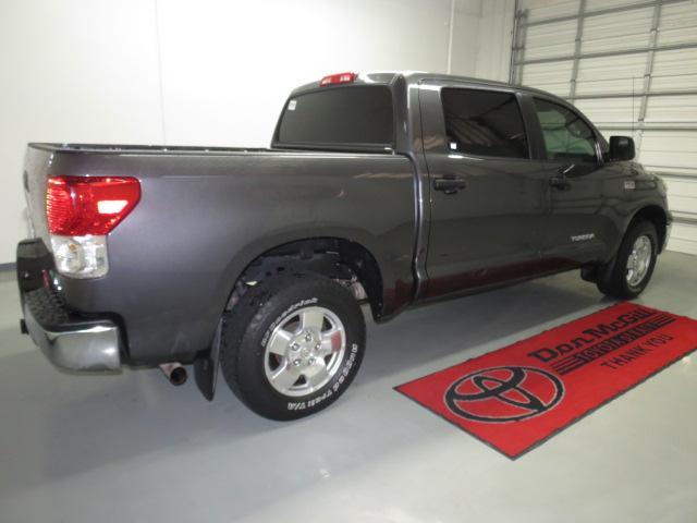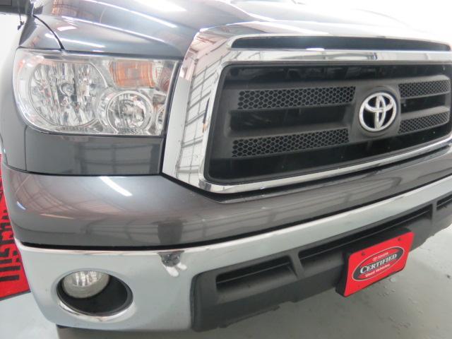 If you've been hunting for just the right, dealer maintained 2011 Toyota Tundra, well stop your search right here. Toyota Certified Pre-Owned means you not only get the reassurance of a 12mo/12,000 mile Comprehensive warranty, but also up to a 7yr/100,000-Mile Powertrain Limited Warranty, a 160-point inspection/reconditioning, 1yr Roadside Assistance, trip-interruption services, rental car benefits, and a complete CARFAX vehicle history report. This dealer-maintained Tundra, with its grippy 4WD, will handle anything mother nature decides to throw at you during one of her bad days at work. Awarded Consumer Guide's rating of a Recommended Large Pickup in 2011. This truck is nicely equipped with features such as Toyota Certified, i-Force 5.7L V8 DOHC, 4WD, Graphite w/Leather Seat Trim or Leather Seat Trim w/Off-Road Package, 3-Passenger Front Bench Seat, 4.10 Axle Ratio, 4-Wheel Disc Brakes, 6 Speakers, ABS brakes, Air Conditioning, AM/FM radio, AM/FM w/CD Player, Brake assist, Bumpers: chrome, CD player, Driver door bin, Driver vanity mirror, Dual front impact airbags, Dual front side impact airbags, Electronic Stability Control, Fabric Seat Trim, Front anti-roll bar, Front Center Armrest w/Storage, Front dual zone A/C, Front reading lights, Front wheel independent suspension, Illuminated entry, Knee airbag, Low tire pressure warning, MP3 decoder, Occupant sensing airbag, Outside temperature display, Overhead airbag, Overhead console, Panic alarm, Passenger door bin, Passenger vanity mirror, Power door mirrors, Power steering, Power windows, Rear reading lights, Rear seat center armrest, Rear step bumper, Rear window defroster, Remote keyless entry, Speed control, Speed-sensing steering, Split folding rear seat, Tachometer, Tilt steering wheel, Traction control, Variably intermittent wipers, and Voltmeter.