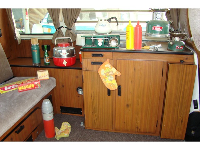 Interior IS NICE,  AS YOU CAN SEE IN THE PICTURES.  There are four seat belts - two lap/shoulder belts for front bucket seats and two lap belts for the rear bench seat. The front passenger seat swivels to face the rear. PASSENGER COMPARTMENT HAS ALL ORIGINAL CABINETRY IN GOOD CONDITION.
