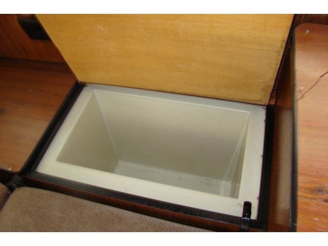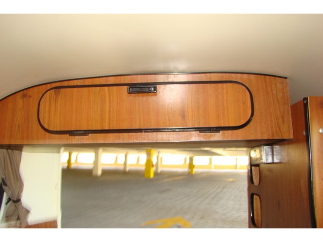 Rear bench seat converting to double bed with locker below.