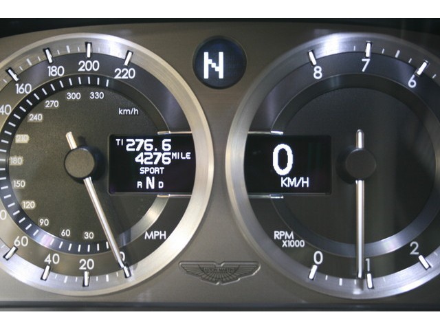 Factory options include: Bluetooth, Red Brake Calipers, Gun Metal Facia, Bright Finish Grille, HID Headlamp - Wash and Leveling, Aston Martin Premium Audio, Garage Door Opener + Auto Dim Mirror, Memory Seats and Mirrors, Powerfold Mirror Assembly, Delete Vantage Badge, Satellite Navigation, Satellite Radio, Heated Front Seats, Warm Charcoal Seat Belts, Front Stone Guards, 19inch 7-Spoke Wheels