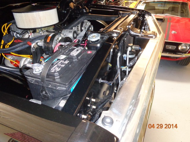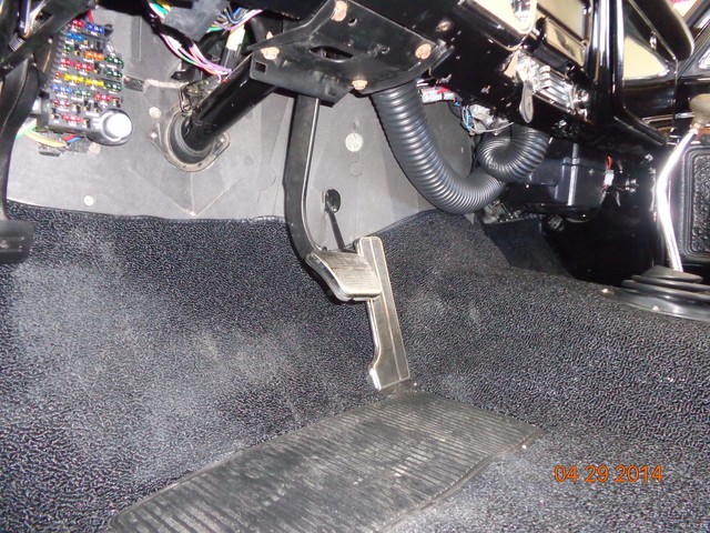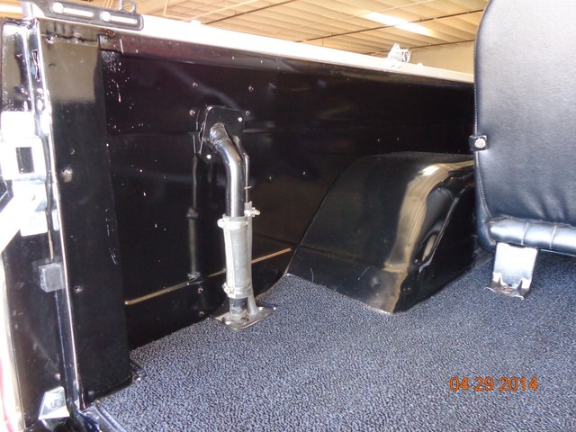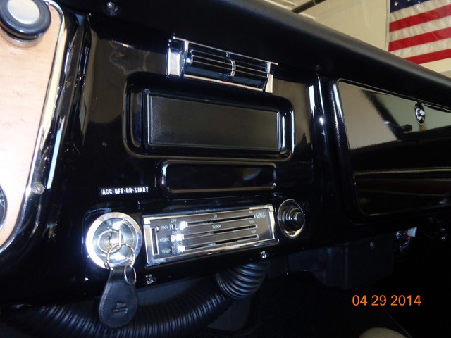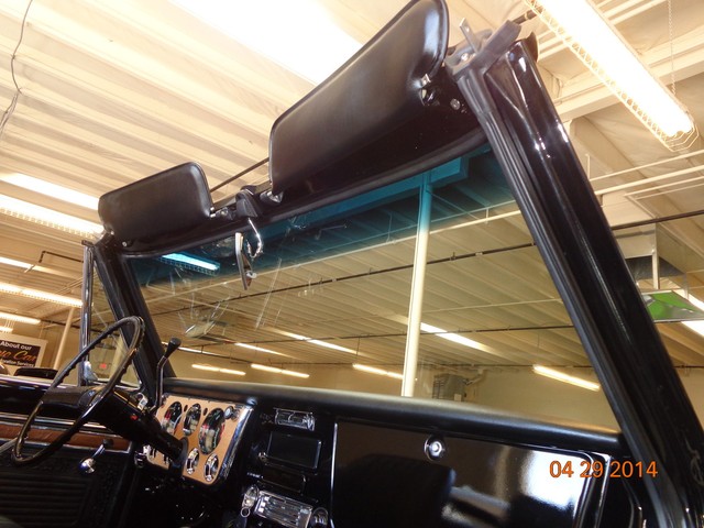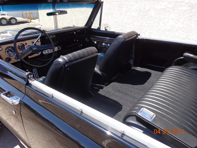 It has factory black deluxe interior that has been restored.  It, too, is in excellent condition.  It has stock bucket seats.  Most components are new including the seat upholstery, door panels, carpets, instrument cluster, steering wheel and dashpad.  It has a black Softtopper removable soft top that is in excellent condition.  It does not have a hardtop.  It has a new and fully functional Vintage air conditioning system.