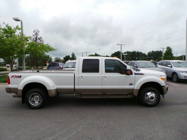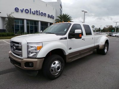 ONE OWNER, Diesel, Navigation, Sunroof, Leather, Heated & Cooled Front Seats, Dual AC, Heated Exterior Mirrors, Memory Seat, 4X4. ONE PRICE STORE! NO DEALER FEES! From mountains to mud, this White 2012 Ford Super Duty F-450 DRW King Ranch plows through any turf. The heavy duty Turbocharged Diesel V8 6.7L/406 engine delivers mind-blowing torque anytime, anywhere. Nothing can stop you in this vehicle. It has the following options: NAVIGATION SYSTEM W/HD RADIO, PWR SLIDING MOONROOF, Pwr windows w/driver one-touch-up/down & backlit switches, Glove box, Child seat tethers on all rear passenger seats, BeltMinder seatbelt-not-buckled chime & flashing warning light, Front door operated dome lamp w/time delay off & IP switch, Color-keyed scuff plates, LCD productivity screen -inc: driver configurable enhanced information 4.2 display, menus for gauge setup, trip computer, fuel economy, towing/off-road applications, (5) button message control on steering wheel, outside temp display, 110V/150W inverter aux pwr outlet in rear console. Stop by Evolution Auto Sales LLC located at 1300 Rinehart Rd, Sanford, FL 32771 for a quick visit and a hassle-free deal! DRIVEN TO EXCEED EXPECTATIONS!