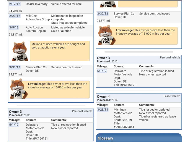 We often use these services to check a vehicles background.  Carfax and Autocheck are wonderful services,  but they have their limitations.  Many times they will show more “owners” than we may state a vehicle has had.  This is because they are an information service only.  They have never seen the car, owned the car,  and have no other information about the car than what is reported from different agencies.  All of this information is originally hand entered into their databases at their source and mistakes and inconsistencies will occur !  For example when a dealer such as ourselves purchases a vehicle they may pick it up as a new owner when this is of course not the case as dealers are not end users.  Also they often contain mileage errors and inconsistencies that appear to make little sense.  Just like any computer generated information report you need to know how to read the report & when to read between the lines. Having seen thousands of these over the years we can help you understand the information listed in these reports,  just ask.