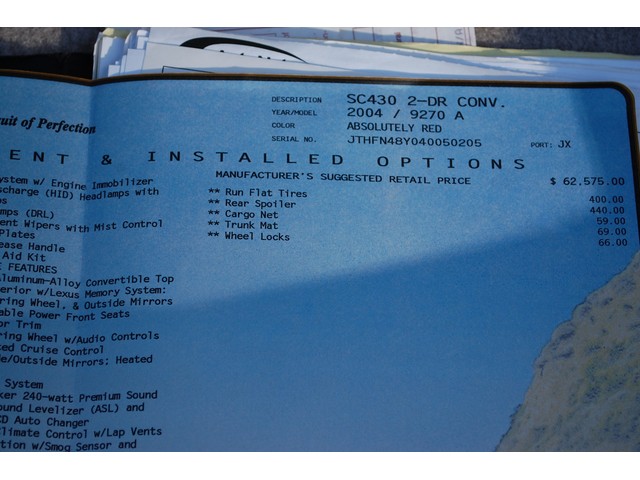 • 2004 SC430 CONVERTIBLE 1 OWNER FLORIDA CAR DEALER SERVICED STUNNING CONDITION !!