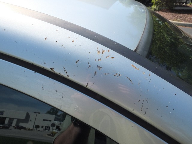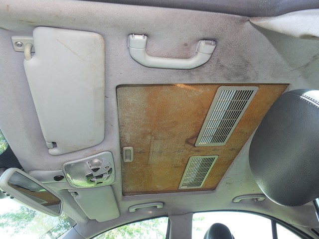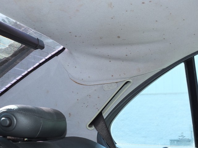 THIS MERCEDES LOOKS PRETTY GOOD INSIDE AND OUT.  THE PAINT IS GLOSSY AND COLOR CONSISTENT FROM PANEL TO PANEL, BUT IT HAS MULTIPLE TINY CHIPS AND SCRATCHES HERE AND THERE.  I TOOK CLOSE-UP PICS OF THE WORST AREAS AROUND THE CAR.  OVERALL THE EXTERIOR LOOKS QUITE GOOD.  THE INTERIOR IS ALL INTACT AND LOOKS GOOD EXCEPT FOR THE HEADLINER WHICH IS MISSING ON THE SUNROOF COVER AND FALLING IN THE REAR (SEE PICS BELOW).  THE INTERIOR OTHERWISE LOOKS GOOD. IT JUST NEEDS A GOOD DETAILING AND MAYBE A LITTLE SEAT DYE HERE AND THERE.